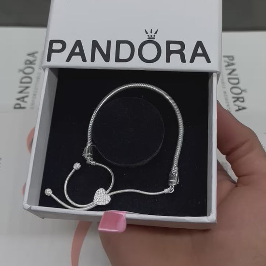 This 925 Sterling Silver Pandora bracelet features a sleek snake chain with a charming Heart clasp ✨.