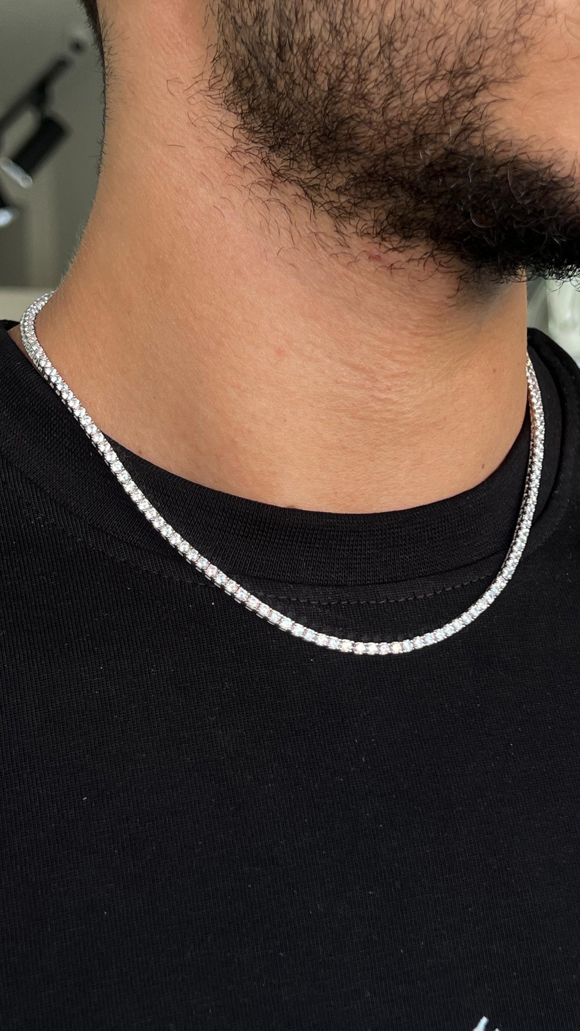 Thick Clear Tennis Necklace in Italian sterling silver-s925